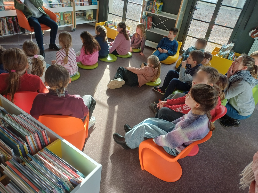 Mardi, les élèves de CE1 et CE2 sont allés à la médiathèque afin d’écouter la lecture d’un album sur le cirque et repartir avec chacun un livre de son choix pour la classe. Nous avons également découvert une séance de broderie. Merci aux personnes pour leur accueil et les explications.